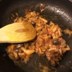 米粉を振るい入れて、よく混ぜる。 トロリとしてきたら、火を止め、ハンバーグの上からかける。完成! _____ Ingredient (For 4 peoples ) A Soy Meat 400g (Boiled or fresh) Avocado 1 Onion 1/4 (Chopped) garlic 1 (grated) Salt 1/2 Teaspoon.