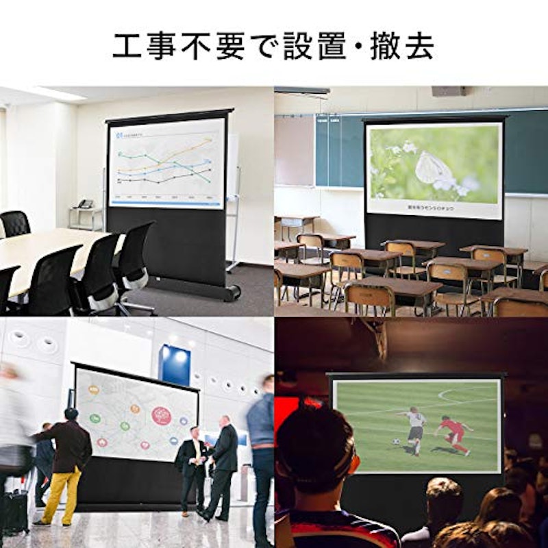 サンワダイレクト プロジェクタースクリーン 100インチ 169 自立 パンタグラフ式 床置き 移動ローラー付 100PRS015 5つ星のうち45 49 ¥32,800 ¥32,800 ホームシアターでもビジネスシーンでの使用でも、スクリーンの高さは視聴者の見やすさに直結する要素な. スプリング巻上スクリーン スタンダードタイプ一覧 スプリング式のプロジェクター用巻き上げスクリーンのスタンダード製品一覧です。 高精度スピードコントローラーとロータリーストップ機構を搭載した70〜250インチまでの多彩なラインナップをご覧. プロジェクタースクリーンには、四隅に黒いフチが付いた「ブラックマスク」があるタイプと、フチが付いていない「マスクなし」タイプの2種類があります。 仕事用や家庭用など、使用する用途によってマスクの有無を選択することが重要です。 ブラックマスクがあると映像が引き締まって見えるため、映画やドラマをより集中して見られるのがメリット。 逆にマスクなしタイプのモノ.