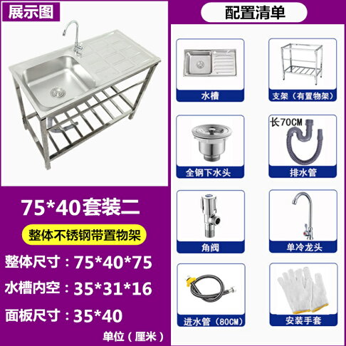 水槽廚房不銹鋼水槽帶支架免安裝水槽支撐架移動式洗菜池洗手盆落地架 露天拍賣