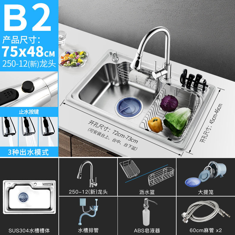 92 38 华雕厨房水槽套餐304不锈钢水池单盆水斗洗碗池加厚洗菜盆大单槽from Best Taobao Agent Taobao International International Ecommerce Newbecca Com