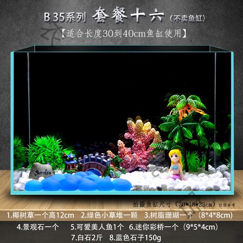 爆卖热销 適合長30cm 80cm魚缸仿真水草松樹城堡懶人造景套餐假山石小擺件 蝦皮購物