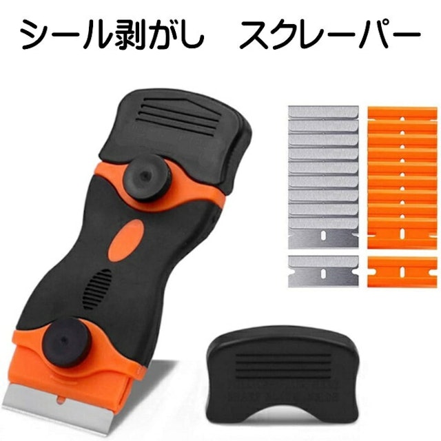 Amazon シール剥がし スクレーパー ガラススクレーパー ポケットスクレーパー 安全スクレーパー ガラス汚れ落とし ガラス掃除ステッカー シール ラベル 接着剤剥がし 壁面の付着物のかき落とし 2種類の替刃付 プラスチックブレード10個 ステンレスブレード10個