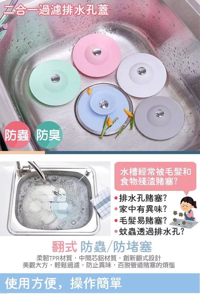 買五送一 地漏蓋過濾網按壓式水槽濾網排水孔過濾矽膠地漏過濾塞水槽塞防堵塞防蟲防臭水槽塞毛髮 蝦皮購物