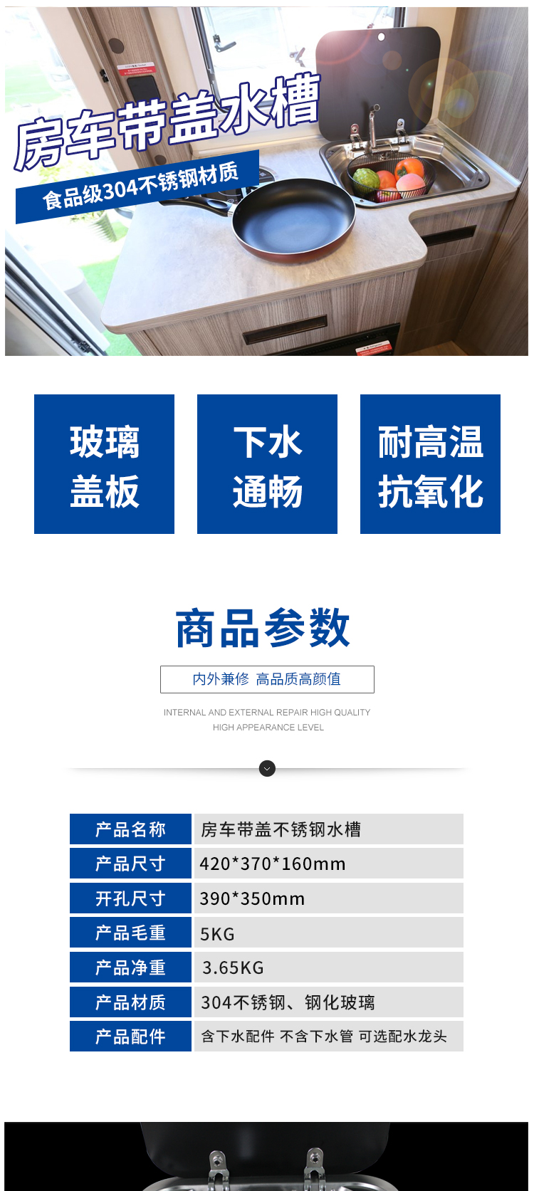 Hk精品 房車水槽折疊水龍頭帶蓋方形翻蓋304水盆洗菜盆單槽洗手盆不銹鋼 露天拍賣